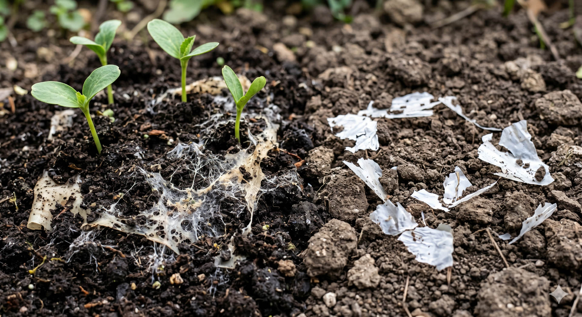 PE 膜在紫外線照射下會脆化,但分子鏈依然穩定。這些無法分解的微塑膠碎裂後沉積於土壤耕作層,阻礙了土壤通氣性與水分滲透。根據長期研究,微塑膠含量過高的土地,作物的根系發育受阻,直接導致產量逐年下降,這是一場慢性的土地自殺